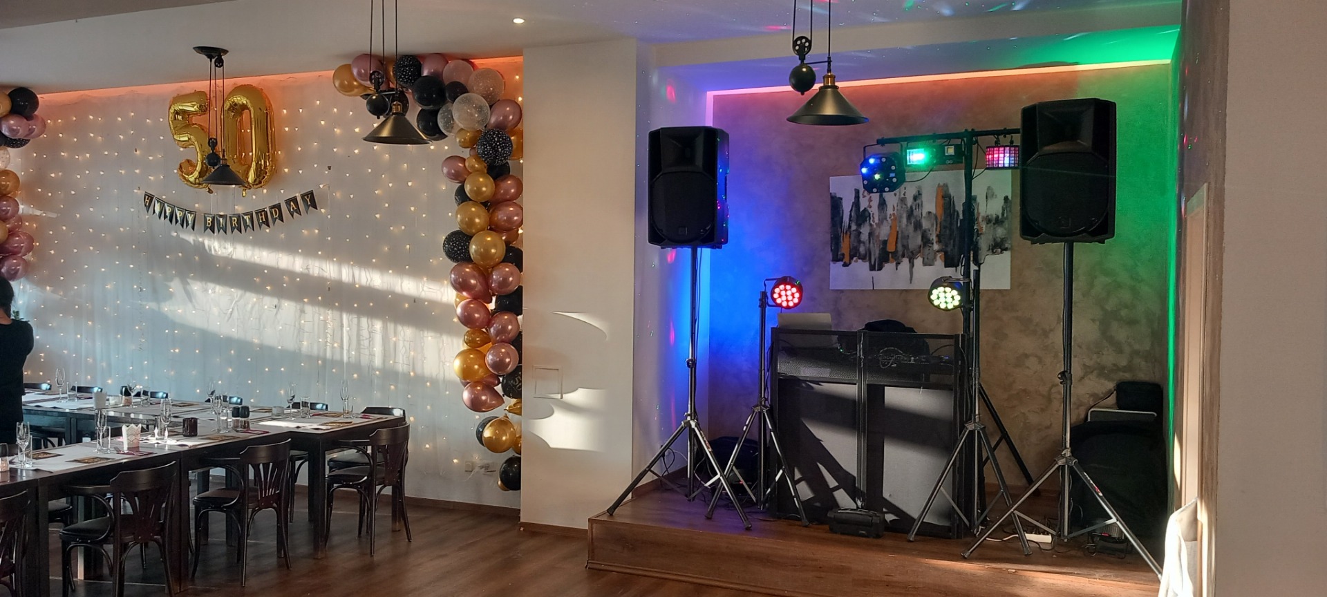 Technika značek RCF 715 Mk5, Sub - Turbosound, Mikrofony znacek Shure, Akg, Hudební technika značek Native Instruments, Traktor kontrol S4, Numark N500 CD, Sennheiser. Světelné efekty neoslňujicí práci fotografa, jemná mlha pro zvýraznění barev.